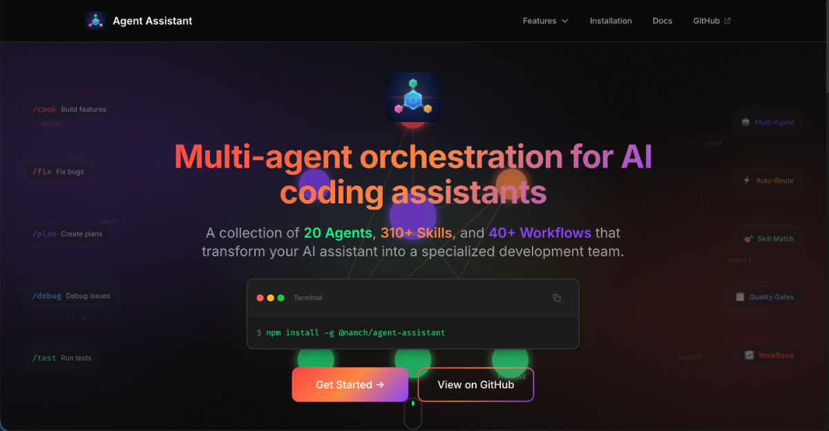 Thực ra concept tương tự các tool khác đó chính là biến con AI tools mà anh em đang dùng (Cursor, Copilot, Claude, Antigravity...) từ "một mình chấp hết" thành một Team 20 chuyên gia xịn xò + 310 skills (tìm từ các nguồn awesome skills) phù cho đa lĩnh vực. Thay vì prompt thủ công từng chút, giờ ae có nguyên dàn đệ tử mỗi người một việc: ông làm Backend, ông Frontend, bà Tester, ông DevOps... phối hợp nhịp nhàng.