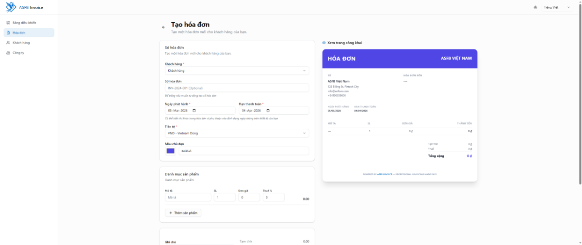 Một hệ thống hoá đơn online đơn giản, giúp bạn: