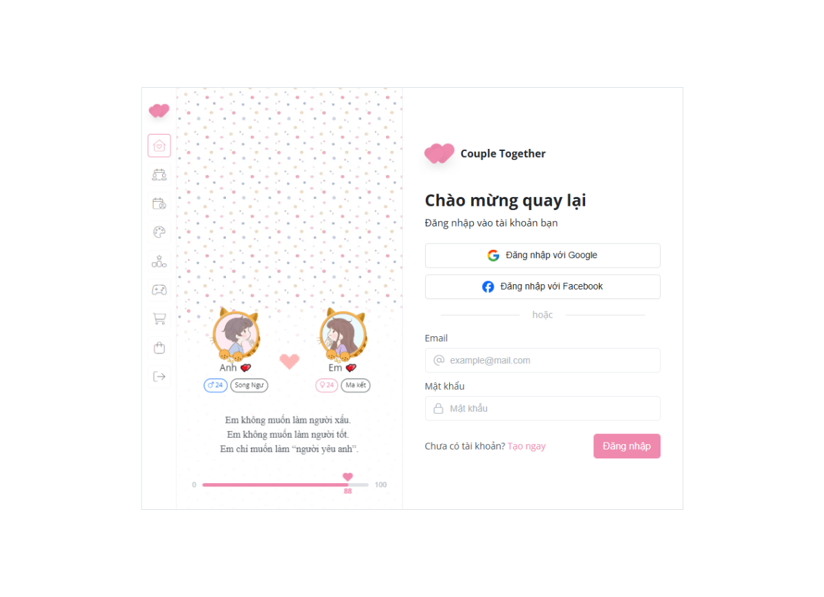 Nơi mà giúp các cặp đôi yêu nhau có thể xem được các ngày và mốc kỉ niệm khi quen nhau và có thể ghi chú những dấu ấn cần thiết cho nhau