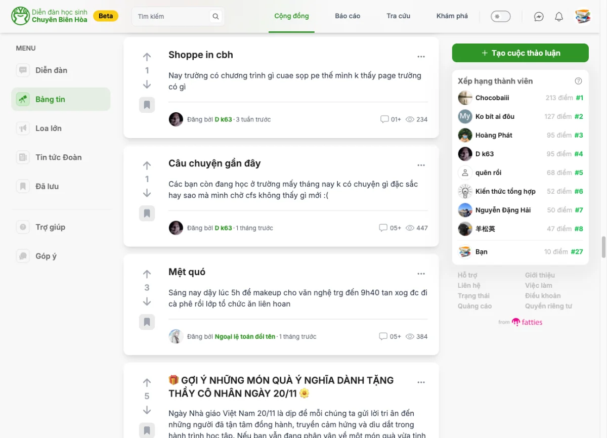 - Khám phá & thảo luận: Tham gia các chủ đề sôi nổi về học tập, đời sống, định hướng nghề nghiệp và sở thích cá nhân.