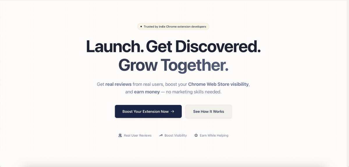 Get real reviews from real users, boost your Chrome Web Store visibility, and earn money — no marketing skills needed.