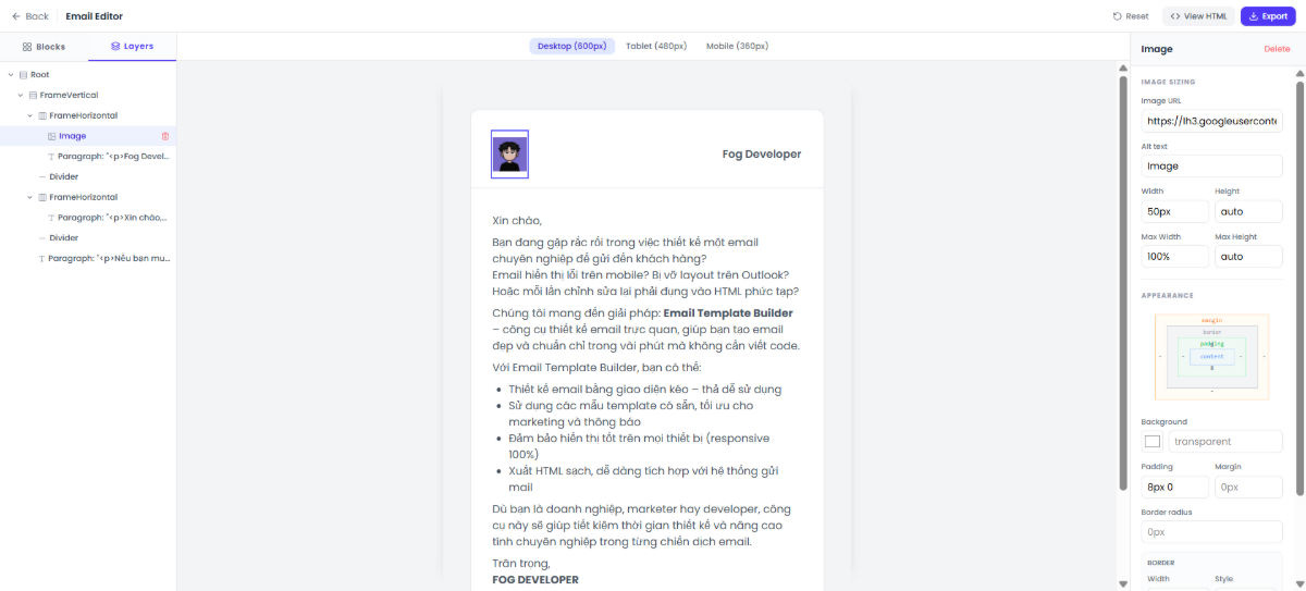 - Chúng tôi mang đến giải pháp: Email Template Builder – công cụ thiết kế email trực quan, giúp bạn tạo email đẹp và chuẩn chỉ trong vài phút mà không cần viết code.