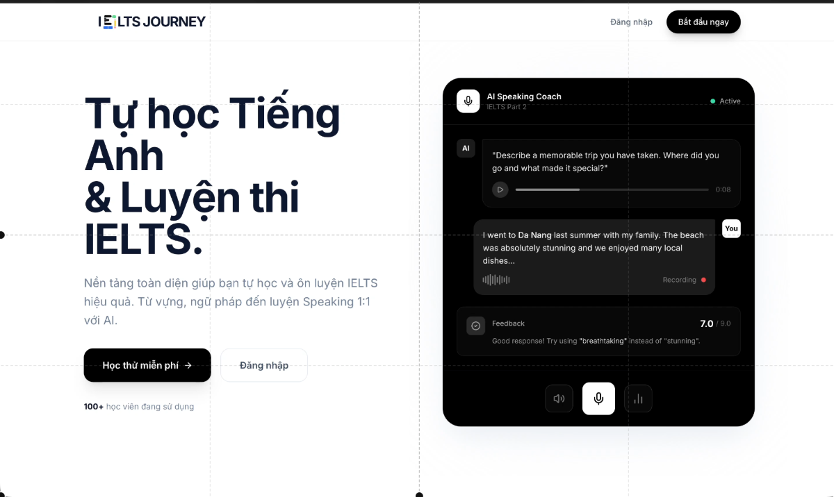 A comprehensive web platform to help users learn English and prepare for the IELTS exam through vocabulary flashcards, quizzes, listening exercises, and AI-powered speaking practice.