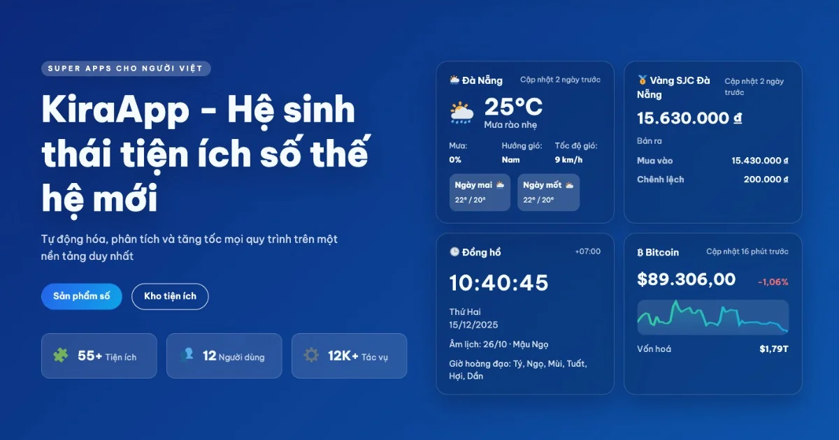 Đăng nhập để bình luậnTrong kỷ nguyên số hóa và AI, chúng tôi tin rằng mọi người đều xứng đáng có quyền tiếp cận các công cụ hữu ích mà không phải trả phí. KiraApp ra đời với sứ mệnh mang đến bộ sưu tập công cụ trực tuyến đa dạng, dễ sử dụng và hoàn toàn miễn phí. - Hơn 100 công cụ đa dạng từ tiện ích phổ biến đến chuyên sâu. - 100% miễn phí, không giới hạn, không cần đăng ký. - Tối ưu mobile để sử dụng mọi lúc mọi nơi. - Bảo mật tuyệt đối - xử lý trực tiếp trên trình duyệt.