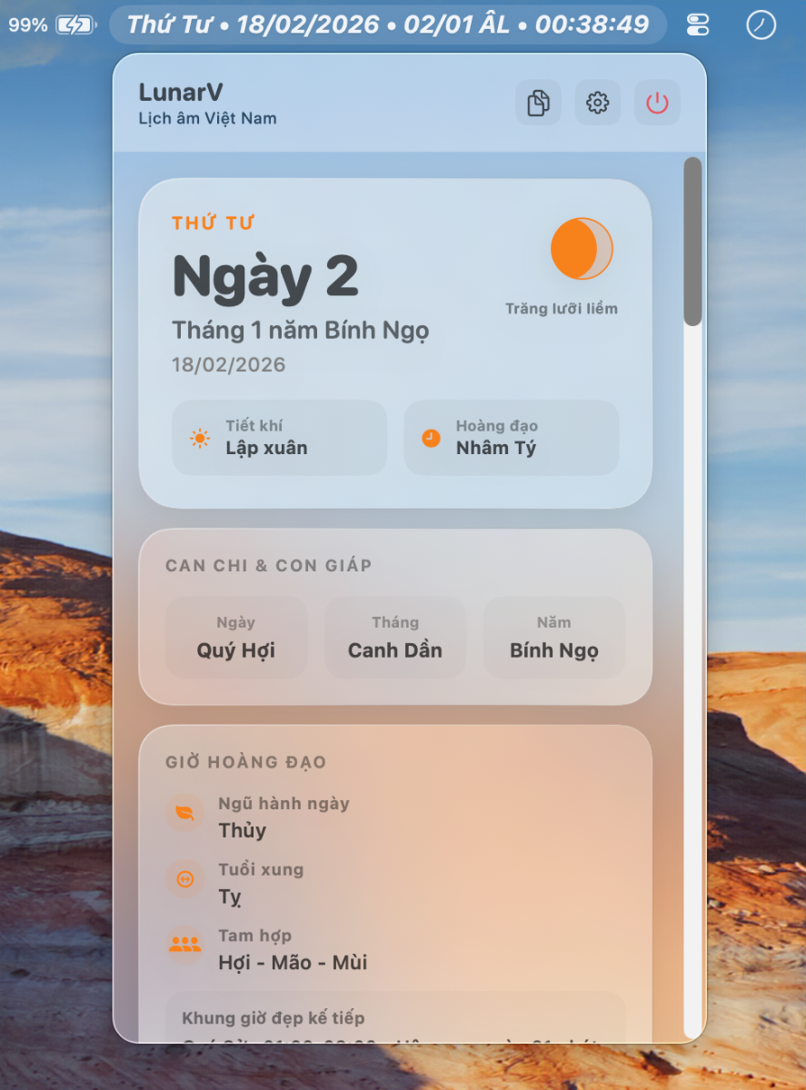 Tiện ích (Widget): Hỗ trợ đặt lịch âm ngay ngoài màn hình Desktop hoặc trong trung tâm thông báo (Notification Center).