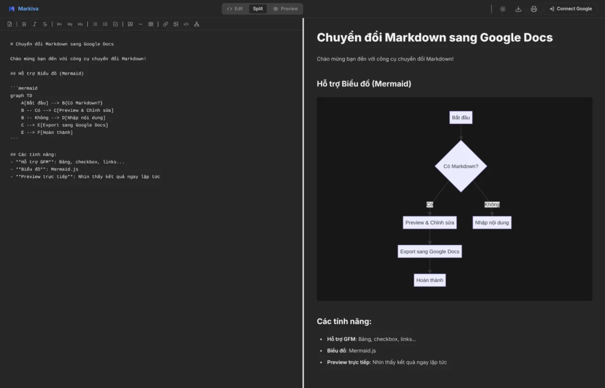 Markiva là công cụ chuyển đổi Markdown sang Google Docs mạnh mẽ, giúp bạn: