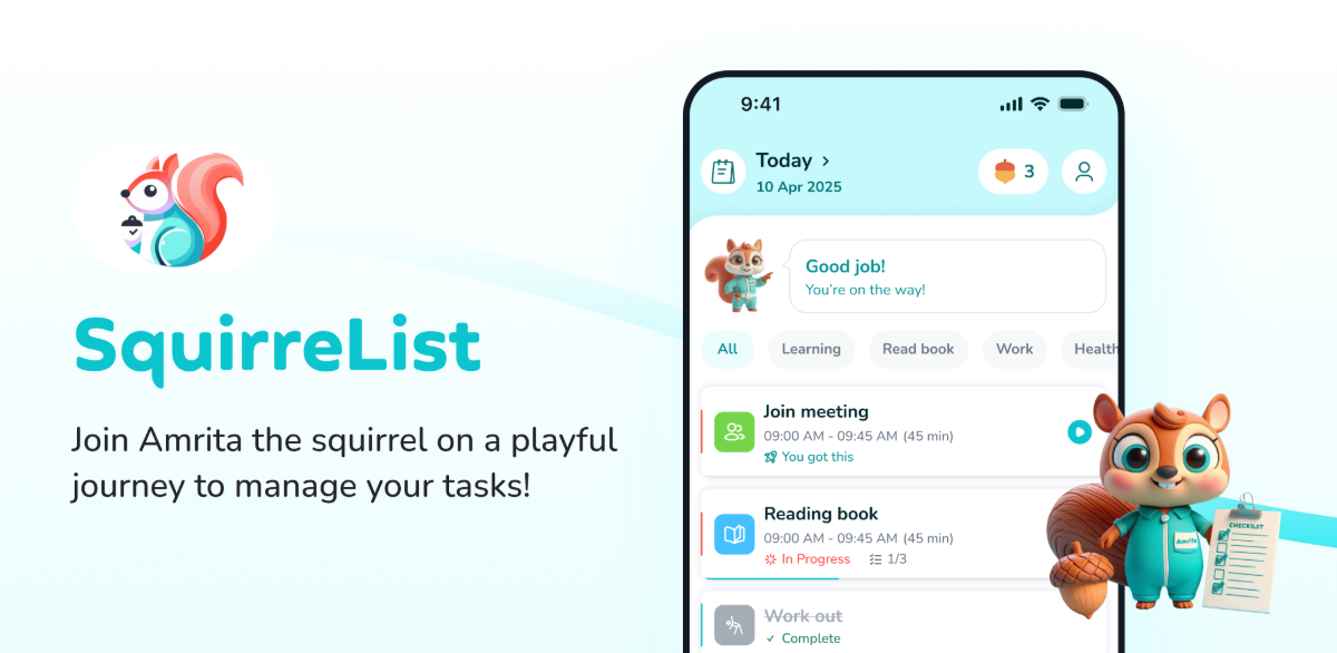 Với SquirreList, năng suất làm việc không còn là một công việc vặt mà giống như một trò chơi -hãy thu thập giỏ sồi của bạn bằng cách hoàn thành các mục tiêu!