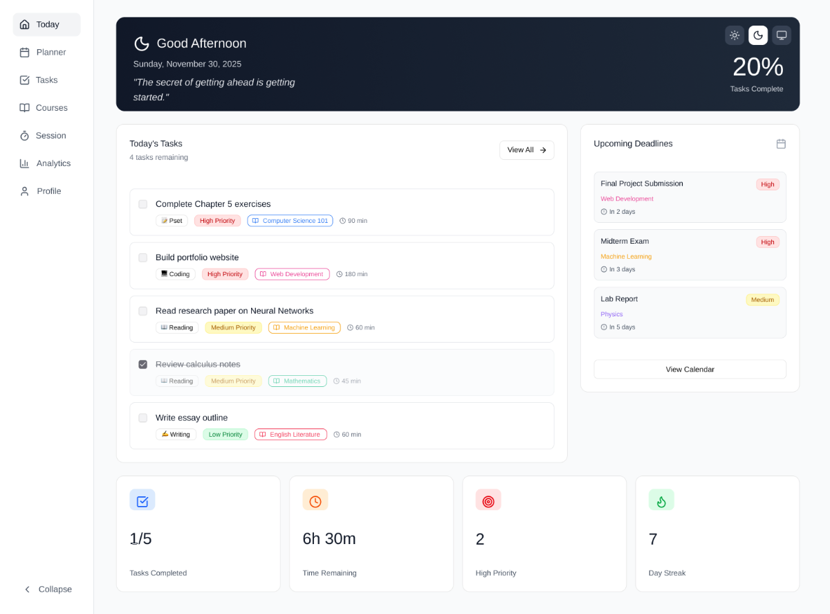 - Tự động trích xuất task từ ảnh chụp bài tập, syllabus, ghi chú tay