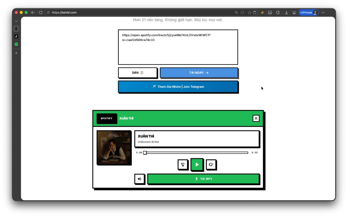 Tải video từ 21+ nền tảng: YouTube, TikTok, Facebook, Instagram, Twitter, Pinterest hoặc SoundCloud kể cả Spotify. Miễn phí, không quảng cáo, chất lượng cao nhất. Không giới hạn.