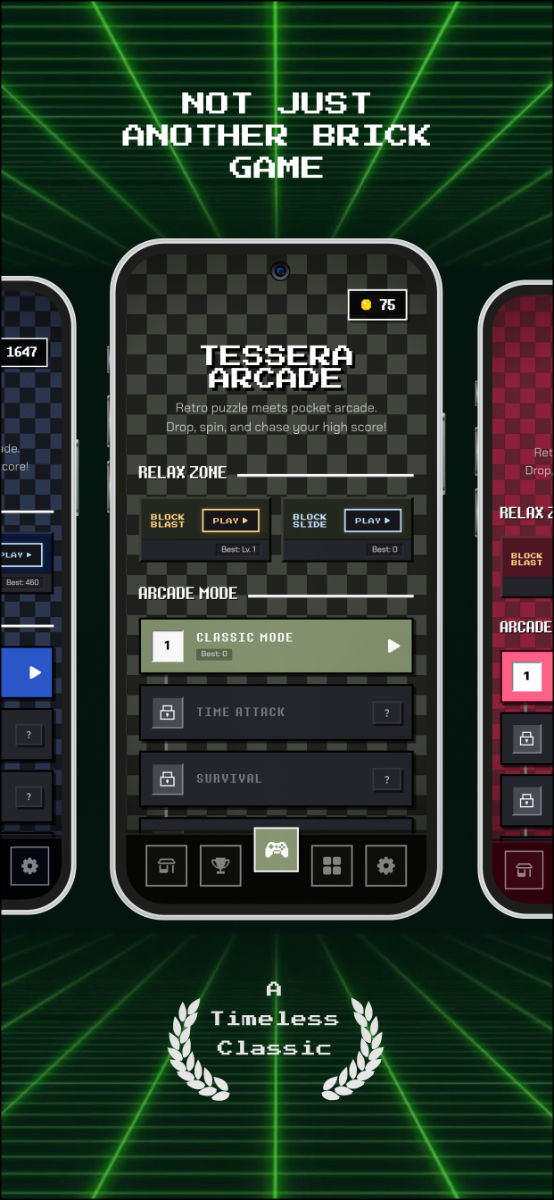 Câu chuyện đằng sau: Là một người yêu game 8-bit, mình muốn tạo ra một không gian giải trí thuần túy, nơi kỹ năng và sự tập trung được đặt lên hàng đầu. Tessera không chỉ là một trò chơi, đó là sự tiến hóa của những khối gạch (Grid Evolved).