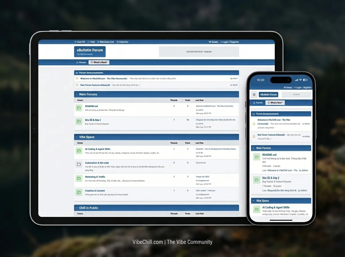 Cộng đồng kết nối AE Vibe Coder, Marketer, Creator 2026. Dùng trải nghiệm Fourm huyền thoại cổ điển style 2006